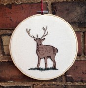 Stag, 8″ Embroidery hoop Freehand machine embroidery stag, Nottingham inspired, Wollaton hall park deer.