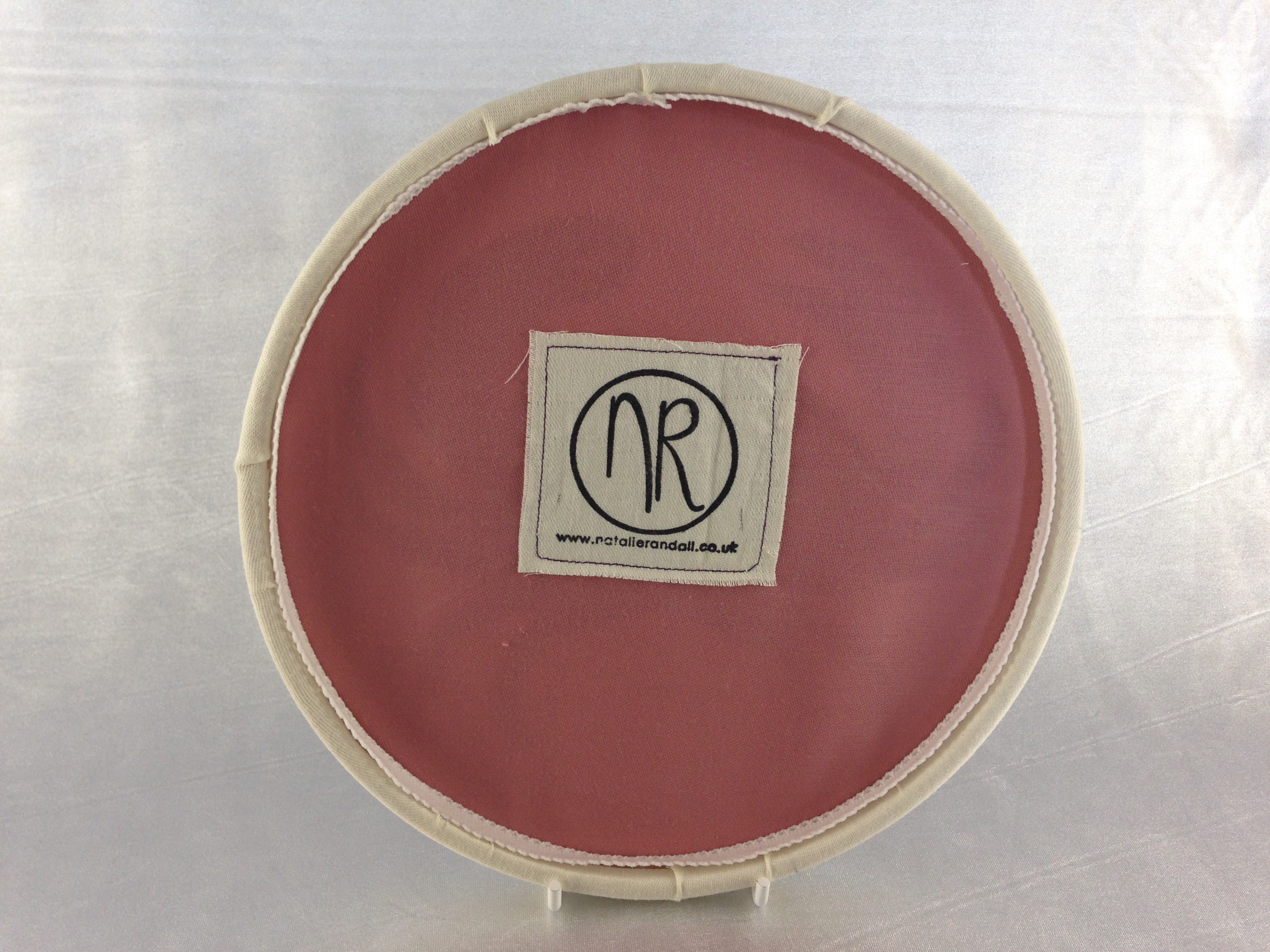 The beautiful accent fabric on this Crab is Liberty of London Peacock pattern and the rest is strong cotton. It is then fixed to the hoop with a bit of extra strong glue and finished off with some ribbon.